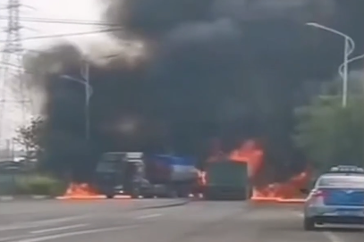 2货车相撞起火 修车师傅拆车头开出火场